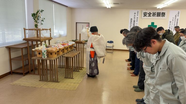 令和8年2月3日の節分の日に、弊社会議室におきまして安全祈願祭および安全会議を行いました。